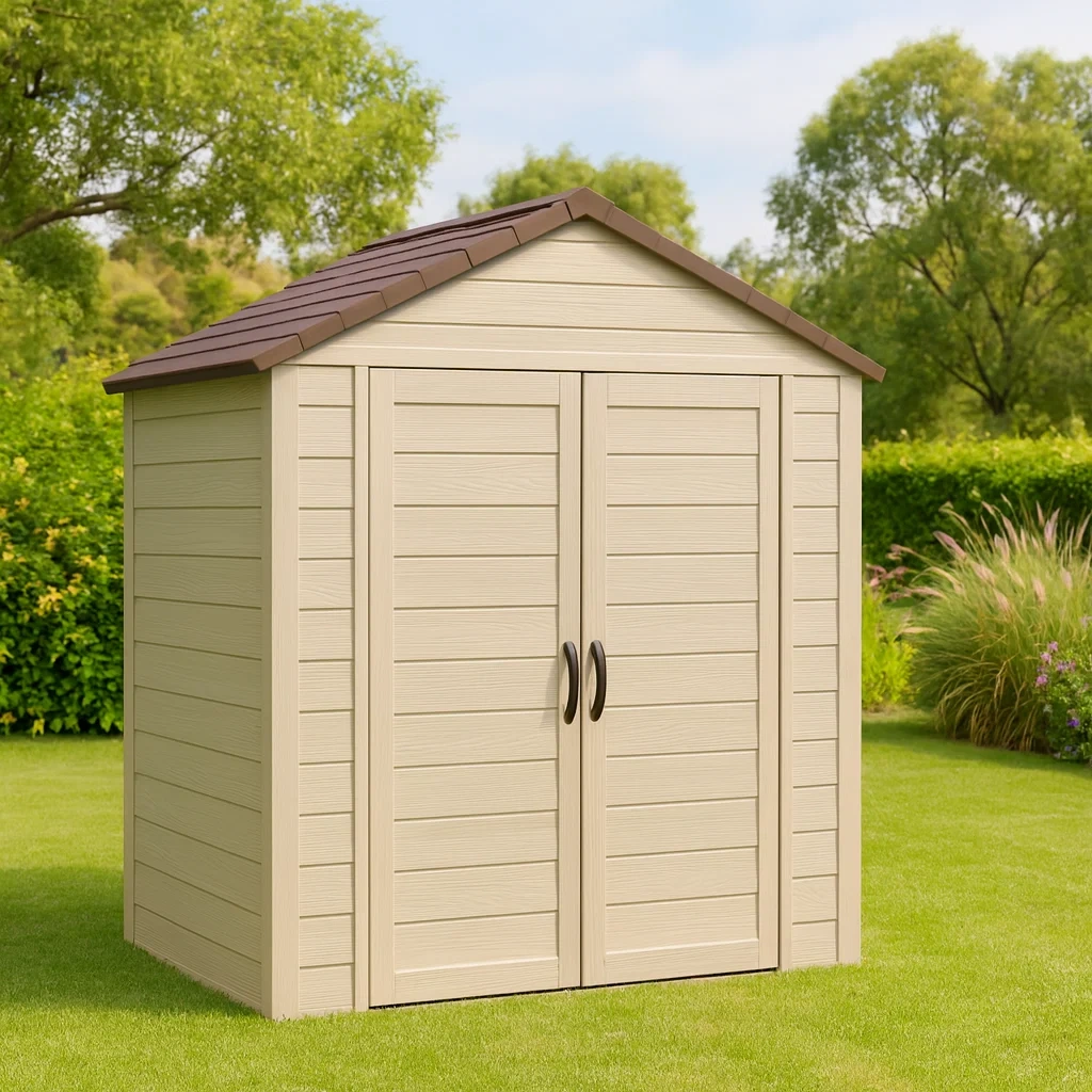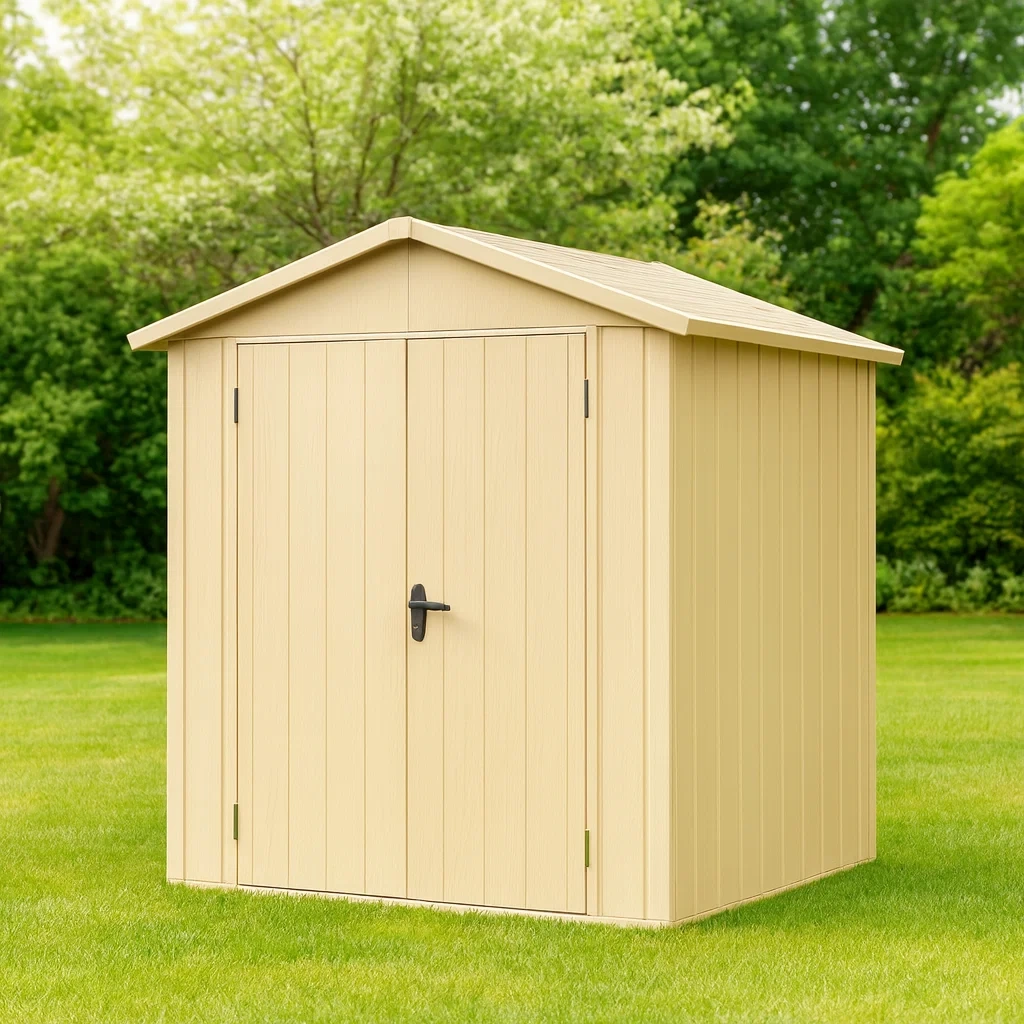 Abri de jardin en résine de couleur beige avec double porte