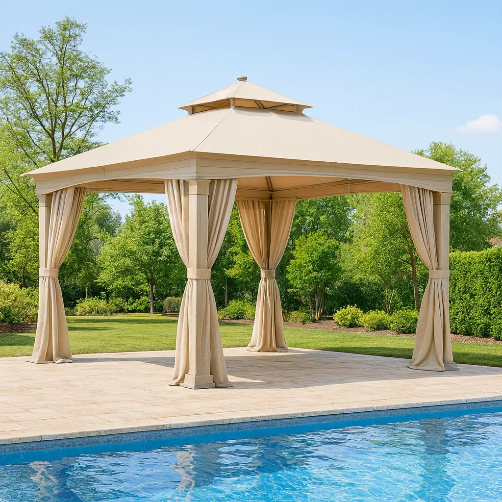 Tonnelle de jardin en acier et polyester de couleur beige